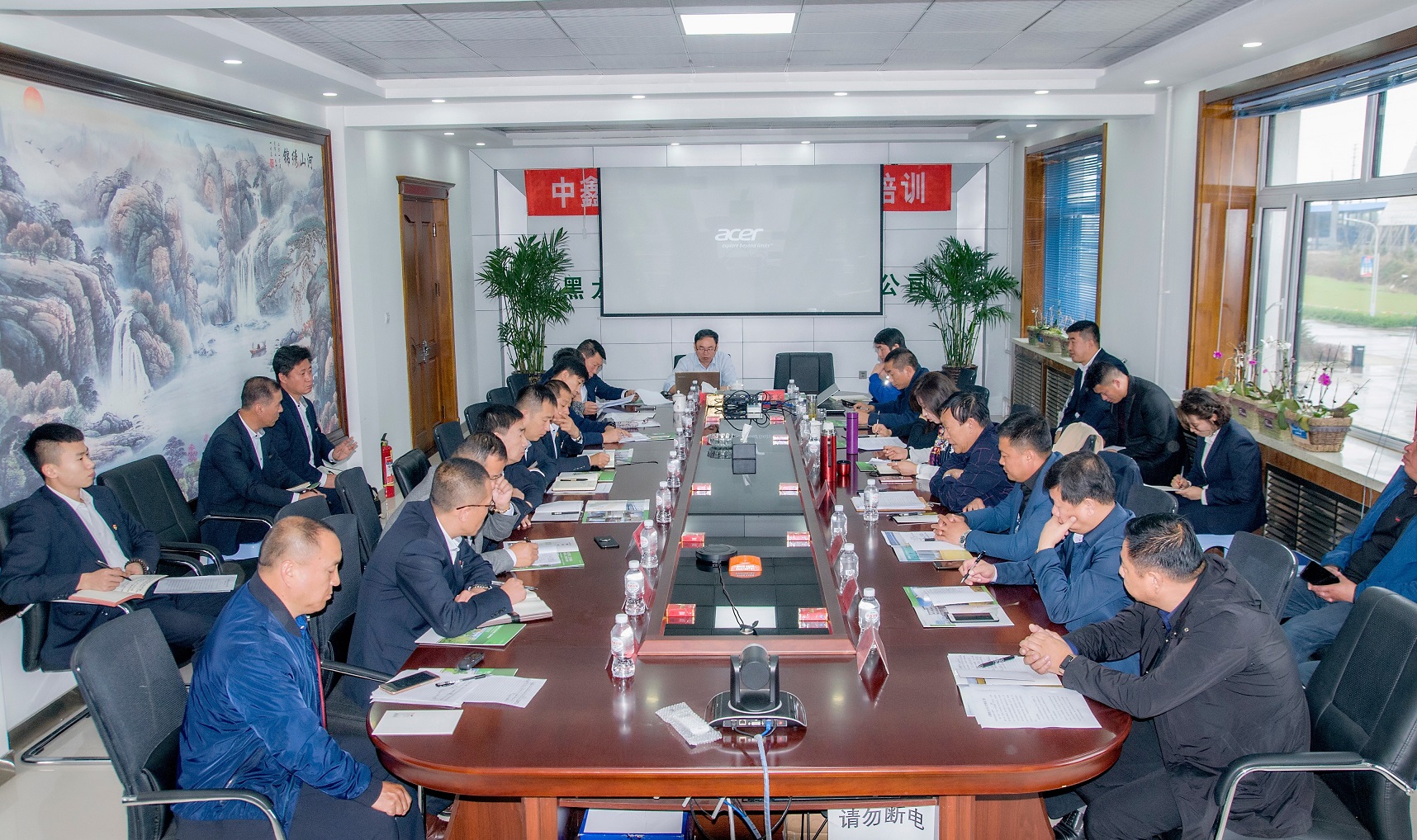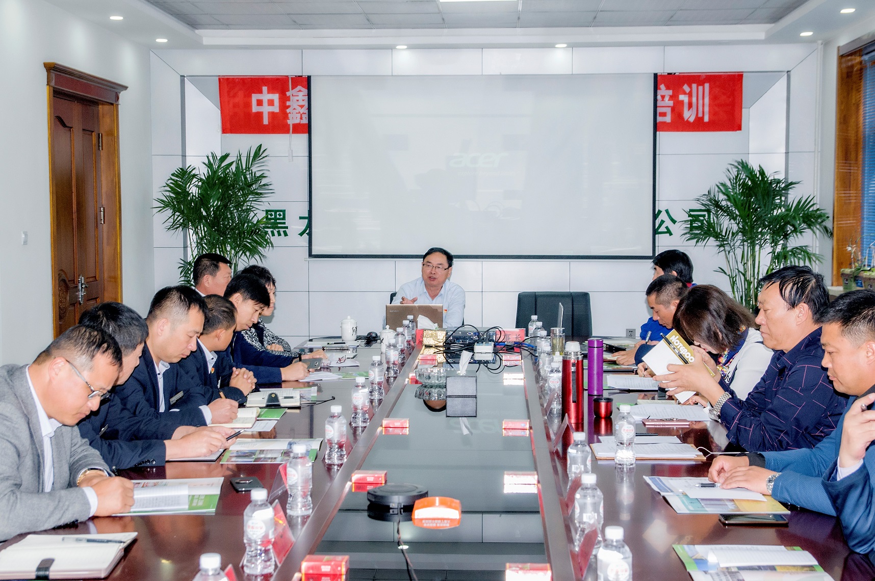 金九銀十,譽(yù)滿龍江,糧谷飄香入庫,東北寒潮來襲,凝聚人心聚力,溫暖萬戶千家!2018年10月10日,慶翔集團(tuán)10月份中層以上干部工作會議在黑龍江中鑫熱電有限責(zé)任公司勝利召開,集團(tuán)公司總經(jīng)理王國茂和高管成員及慶翔熱電、中鑫熱電、肇源熱電、慶安糧油各子公司主要領(lǐng)導(dǎo)和部門負(fù)責(zé)人共30人參加了會議。本次會議是在東北采暖開始和40MW新建機(jī)組并網(wǎng)發(fā)電前沖刺的關(guān)鍵節(jié)點(diǎn)上召開的,是溝通融合各子公司、凝聚集團(tuán)干部職工的關(guān)鍵盛會。